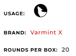 Varmint X is designed specifically for the demands of predator and varmint hunters. The sleek, polymer-tipped bullets are explosive upon impact. Varmint X combines the proven dependability Winchester is known for with today's latest technology, providing hunters the ammunition of choice for pursuing everything from prairie dogs to coyotes.