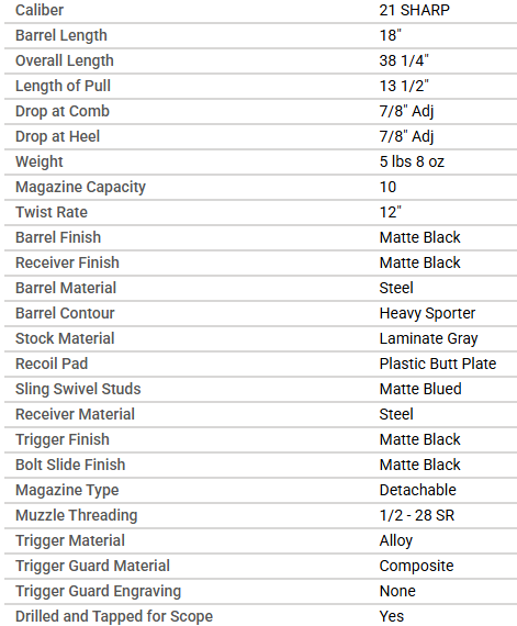 - 22 LR and 21 Sharp - 10 round capacity